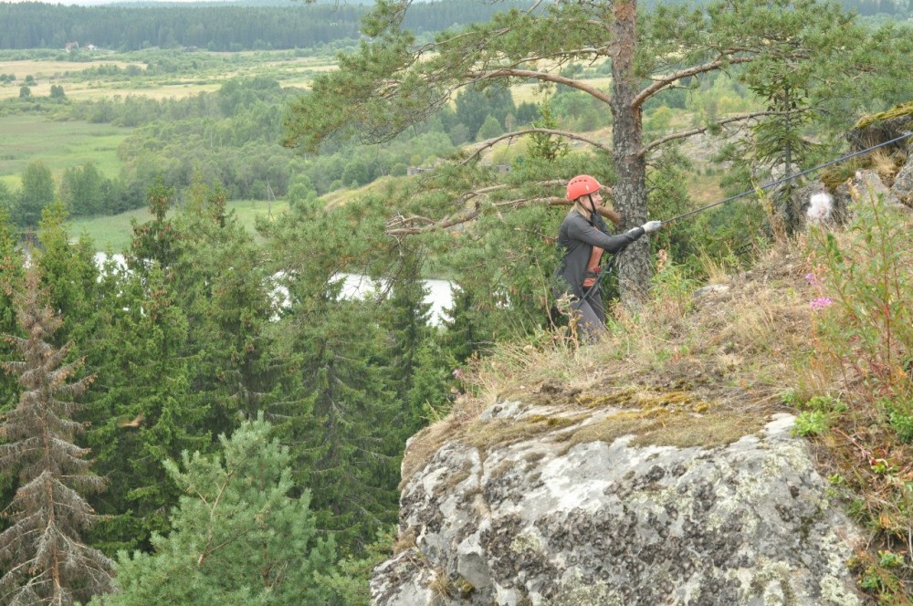 Организатор фестиваля Елена Софиенко, скала Паасо. Подготовка к дюльферному спуску.