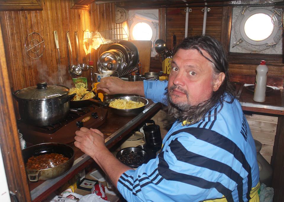 Владимир Софиенко готовит для команды путешественников на камбузе "Рассвета"...скоро будет шторм...