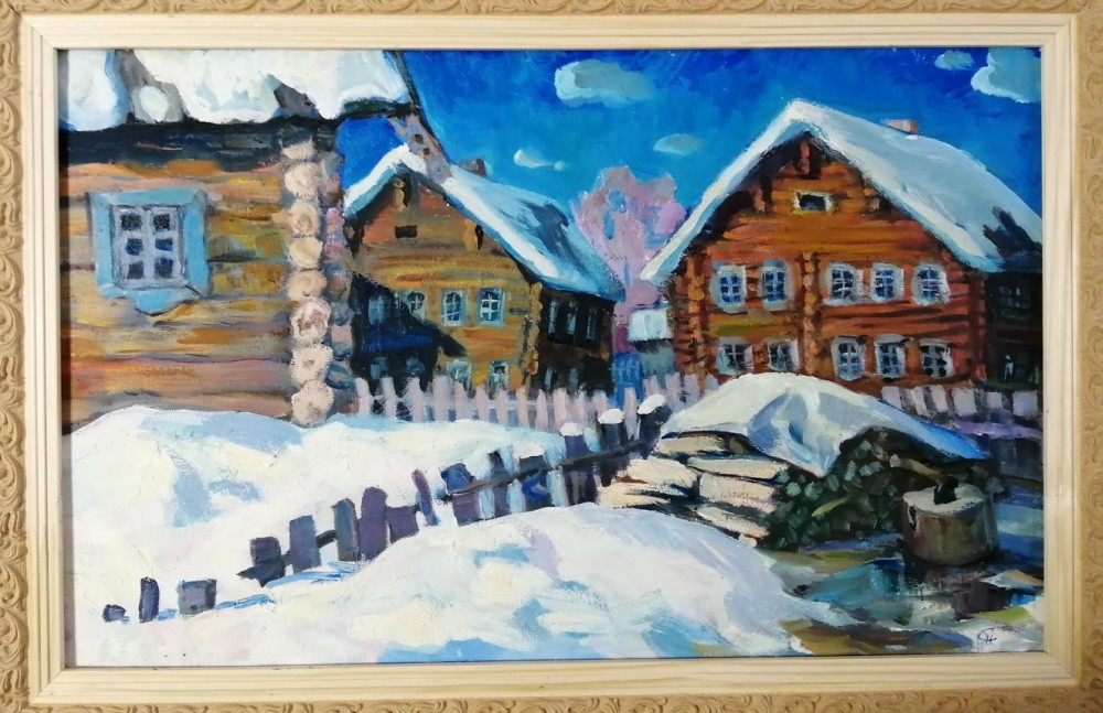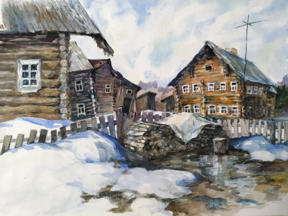 Некоторые работы выполнены в рамках пленэра "Легенды Сямозерья" в старинной карельской деревне Корза и старинной карельской деревне Рубчойла (проект АНО "Петроглиф" "Карельские жемчужины", март 2019 г.).