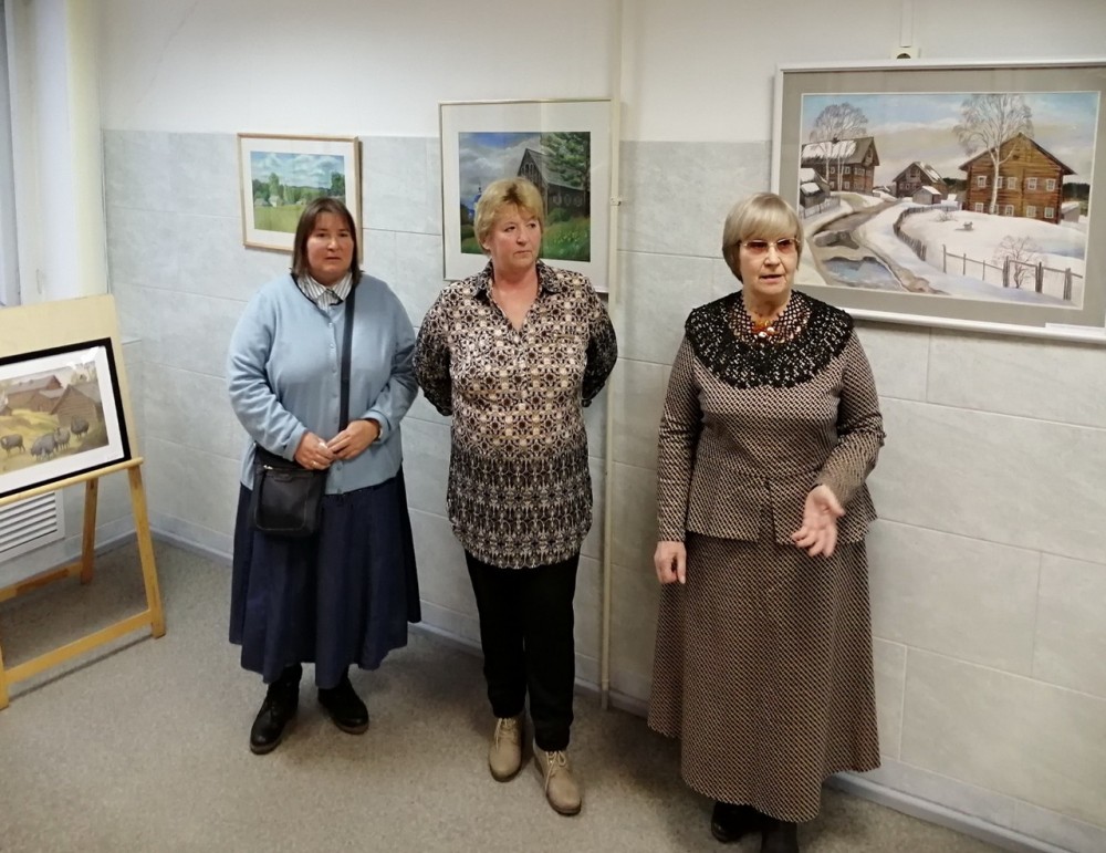 На выставке представлены работы карельских художников Раисы Малашенковой, Елены Крушельницкой, Ирины Соболевой, Натальи Сосновой.